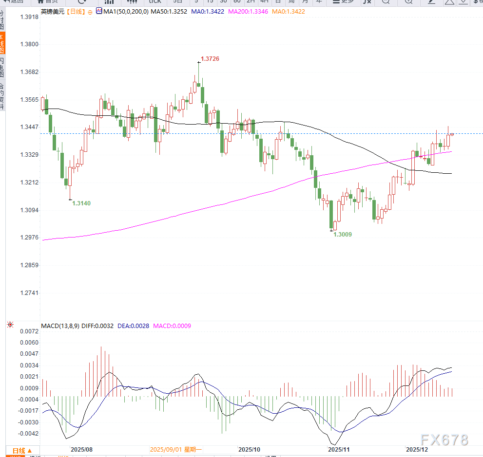 汇价暂时站稳短期均线,但中期趋势仍偏震荡,动能指标未显示明显单边突破信号。