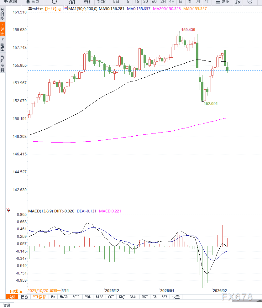 反之,一旦失守关键支撑,可能加速回落,重新测试154.91附近支撑。